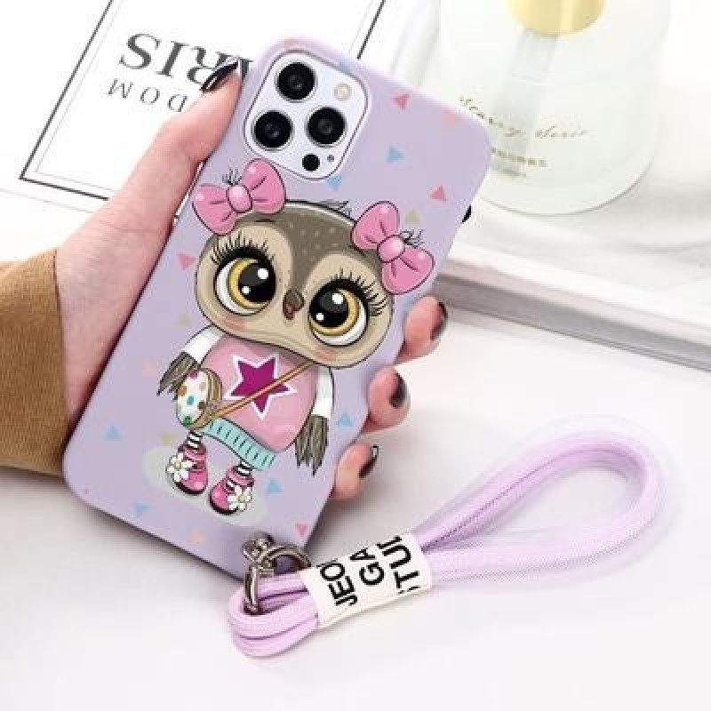 Симпатичный Сова Мультяшный ремешок Ремешок для телефона Чехол для iPhone 13 12 11 Pro Max Xiaomi Mi